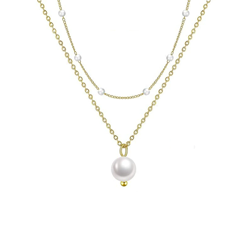 HomeBY MATEREIALFashion JewelryFirstmadam Fashion Brass Pearl Necklace Layered Design Women Double Layer Clavicle Chain Factory Price